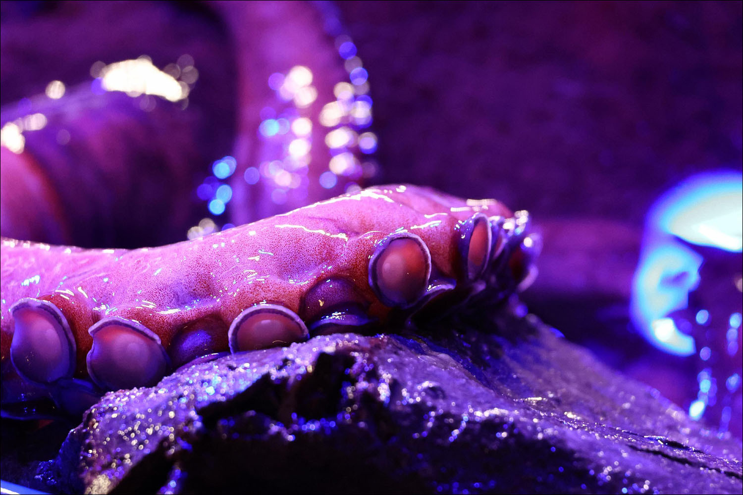 Third, the upshot is that it doesn't need to think about how to grab things with its tentacles. The octopus sticks to everything it touches. Moreover, it sticks to living things more strongly, faster, and more painfully than to rocks or keyboards. Anything with the chemical signature of food is held significantly more firmly than something of unclear utility to the octopus.