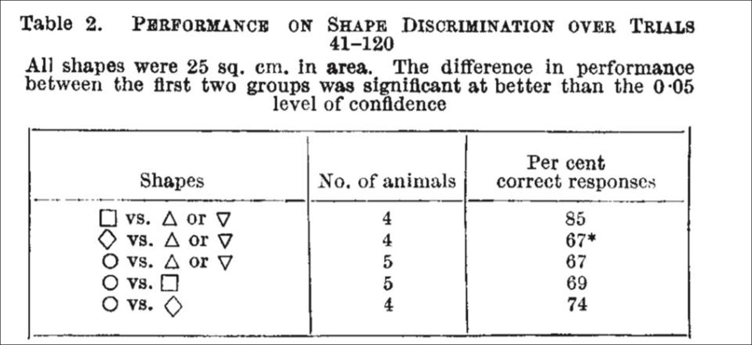 "The chromatophore-based skin appearance system is probably an open loop and inaccessible to the octopus's vision. In contrast, under laboratory conditions that are not ecologically appropriate for the octopus, learning of shapes and extent of visual figures was extensive and flexible, probably consciously planned. Similarly, the local location of octopuses in space and navigation through it may be determined by the plane of light polarization and the arrangement of visual landmarks; they are learned and controlled."