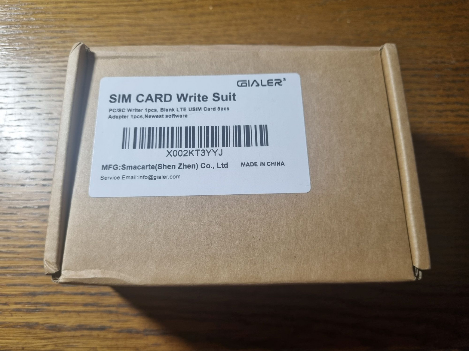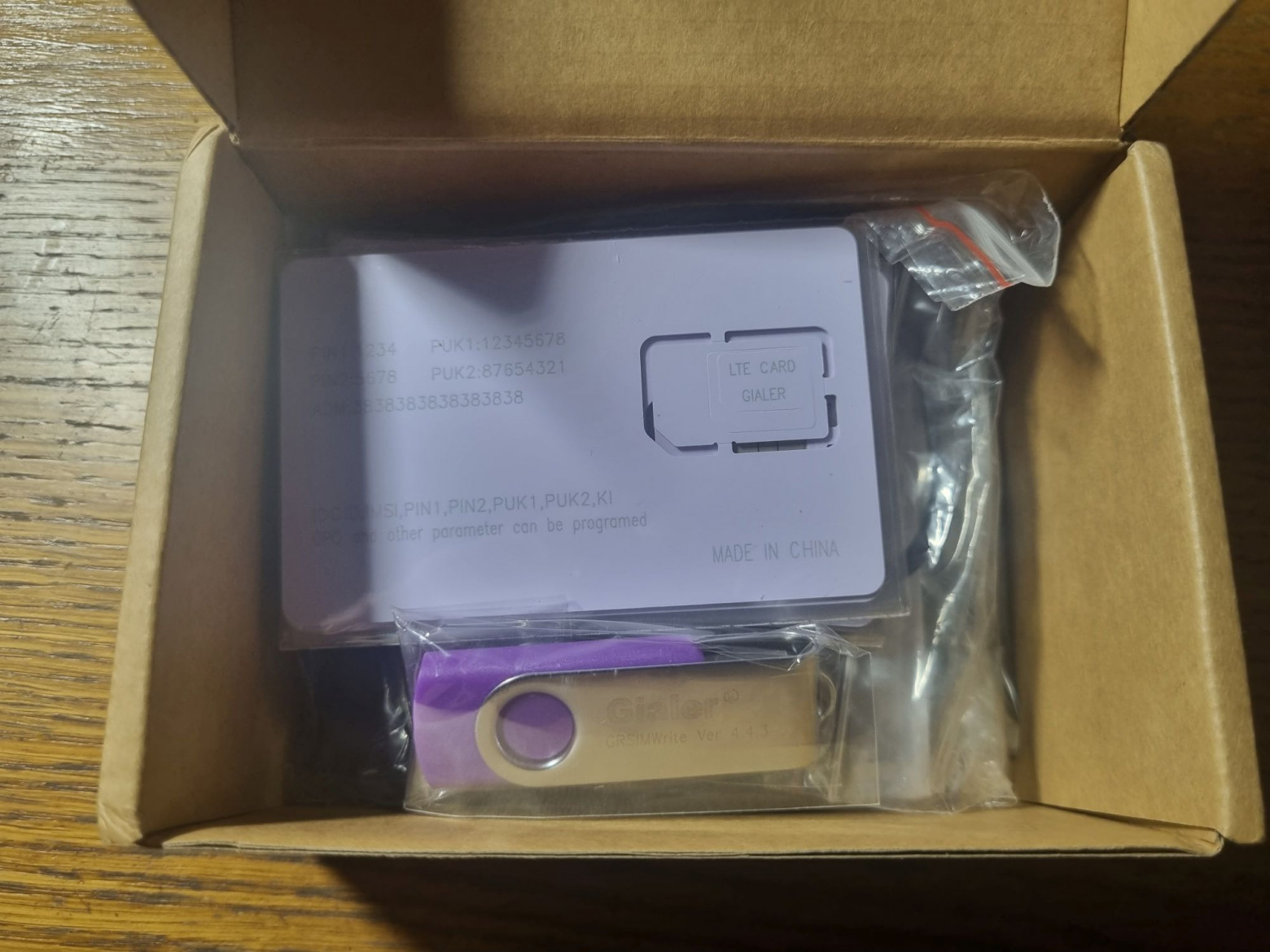 The Gialer cards were purchased, arriving as a kit including five blank cards, a USB card reader (Uthai X02), a SIM adapter for smaller form factors, and a flash drive with software.