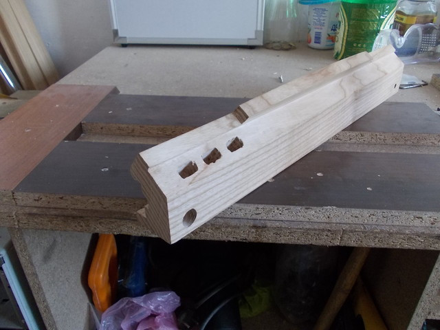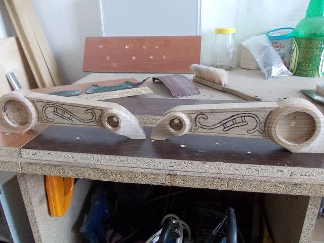 After all the preparatory work, the parts were carefully sanded, polished, coated with several layers of wood stain, and then varnished (also in several layers). After assembly, everything looked something like this.