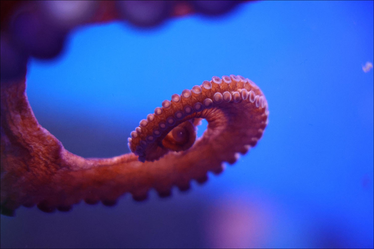 And if you happen to be sitting on the bottom thinking a philosophical thought, there's a good chance a tentacle goes idle and performs one of its default tasks. For example, just reflexively feeling everything around, exploring the environment. So if the thought was a long one, at the end you might find you're already holding something new and interesting. Like a shell. Or a diver.