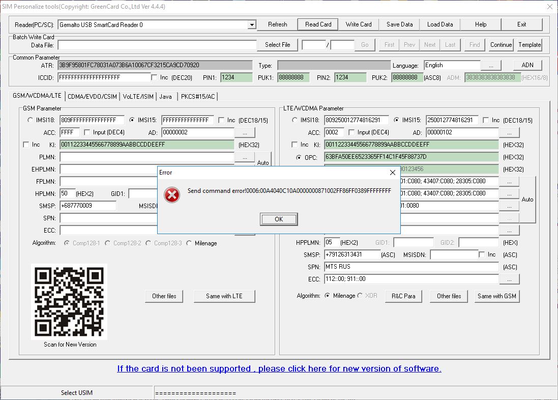 I want to warn anyone who arrives here from a search engine expecting this kit to be a miracle device. You cannot read data from a SIM and write it to another. Well, technically you can, but the copy won't work.