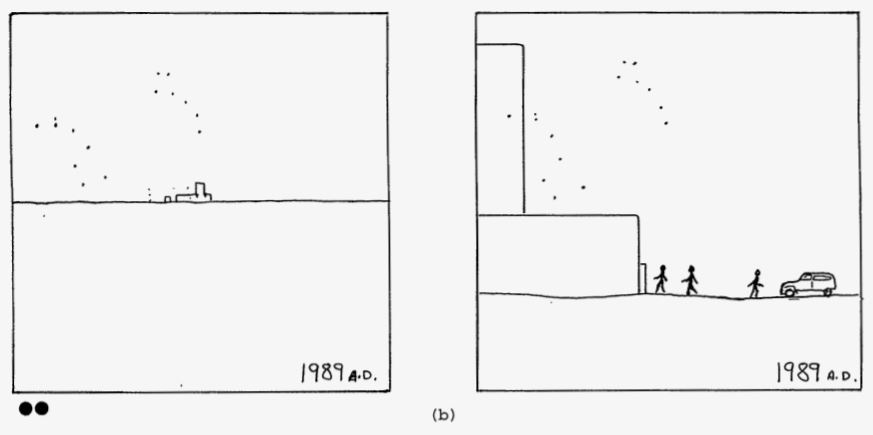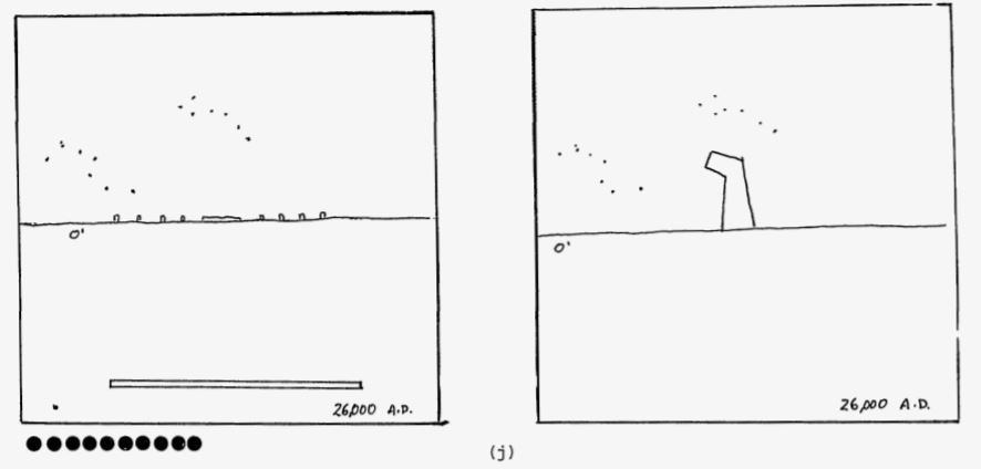 - Level I: "Something made by humans is here." Communicated through obviously artificial landscape features — mounds, trenches, and markers placed in geometric patterns impossible in nature.