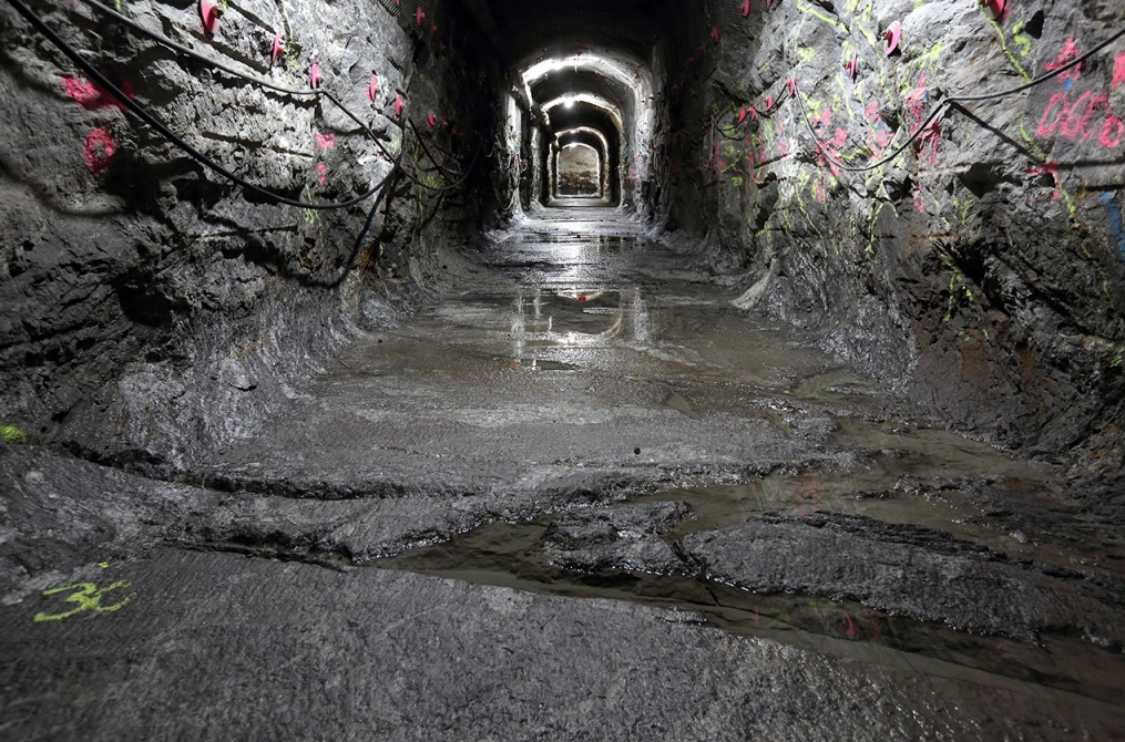 Tankers near the mine, which the Germans use to haul out about 12 cubic meters of radioactive water per day.