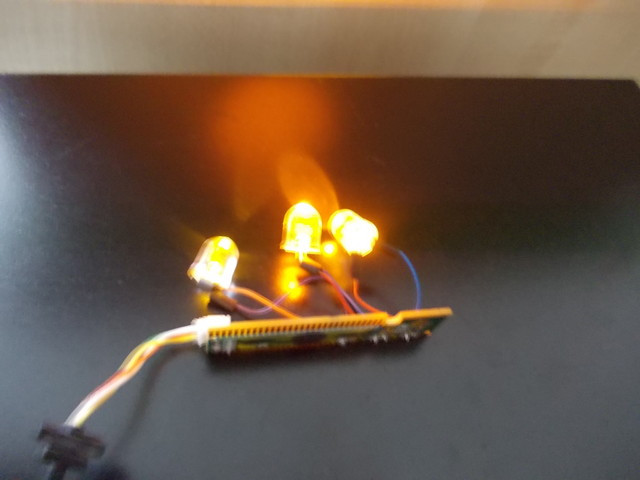The green LEDs were removed and replaced with larger LEDs that give off a warm, tube-like glow. To make the LEDs look even warmer and more vintage, a brass overlay was made for them.