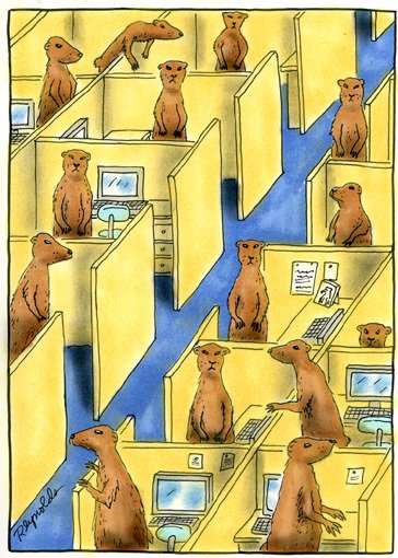 I sit at my desk and stare at my monitor. Around me, the office hums with activity. People typing emails about emails. Managers managing the management of other managers. Meetings being scheduled to plan future meetings about the outcomes of previous meetings.